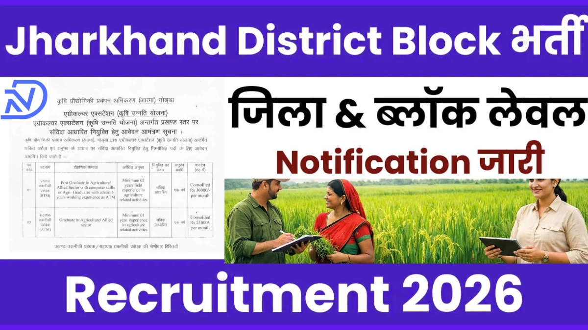 झारखंड ब्लॉक लेवल भर्ती 2026: कृषि उन्नति योजना में 33 पदों पर सीधी नियुक्ति | Block level Vacancy in Jharkhand 2026