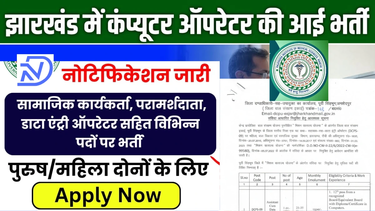 Jharkhand DCPU Recruitment 2026: सहायक-सह-डाटा एंट्री ऑपरेटर का सुनहरा मौका, ऑफलाइन आवेदन 8 अप्रैल तक