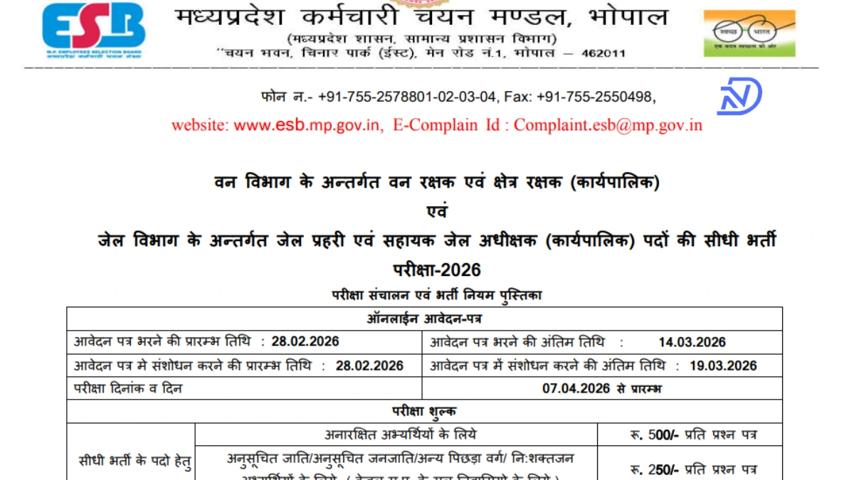 MP Forest Guard Vacancy 2026 – वन रक्षक के 1679 पद | MPESB Van Rakshak Vacancy 2026 | वन विभाग भर्ती 2026